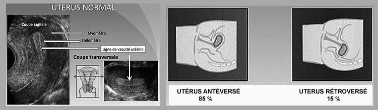 L’angle formé entre l’axe du vagin et l’axe du col détermine l’antéversion (angle ouvert en avant et inférieur à 90°) ou la rétroversion utérine (angle supérieur à 90°.).