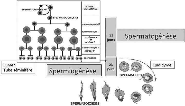 La production des spermatozoïdes ou spermatogénèse, qui se situe dans le testicule à partir de cellules souches, répond à deux besoins :