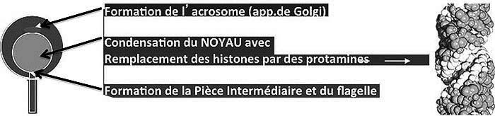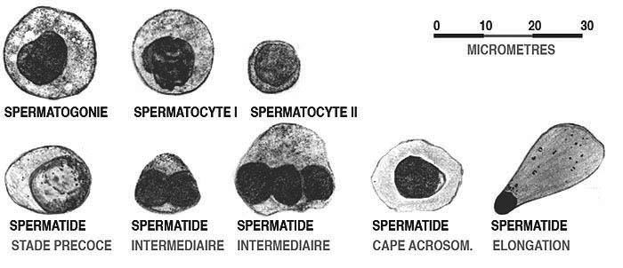 La transformation du spermatozoïde à partir de la cellule souche se fait en plusieurs étapes successives.