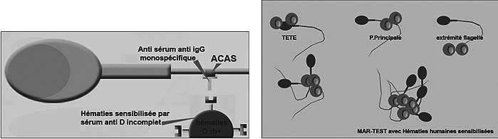 L’apparition d’agglutinants formé par le support sensibilisé et les spermatozoïdes mobiles permettent de conclure à la présence d’auto-anticorps antispermatozoïdes de type IgG.