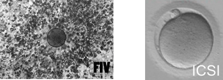 En fécondation in vitro classique il est effectivement difficile d’observer l’ovocyte car il est caché par le cumulus oophorus et, plus à son contact, par la corona radiata.