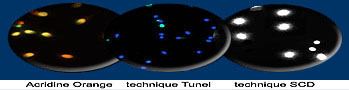 La techique SCD (sperm chromatin dispersion) plus facile à mettre en oeuvre.Elles permettent une évaluation du taux de fragmentation de l’ADN. Toutefois les différentes techniques n’abordent pas l’analyse de la fragmentation de la même manière et ne donnent pas les mêmes informations :