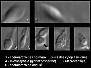 En dehors de la recherche d’anomalie au niveau de la pièce intermédiaire ou de la pièce principale (flagelle), indispensable pour une bonne mobilité du spermatozoïde, Les recherches actuelles s’orientent aussi vers les dysmorphies de la tête elle-même.