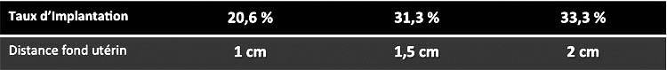 L’étude de COROLEU (1998) montrait que le résultat pouvait être influencé par la distance entre le fond de la muqueuse utérine et le taux de succès :