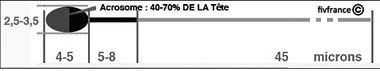 Ovalaire et mesurant environ le dixième de la longueur du spermatozoïde est constituée de deux éléments importants: le noyau et l’acrosome.